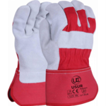 Premium leather rigger gloves with red backing.