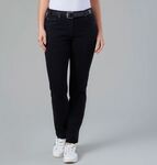 98% Cotton, 2% Elastane. Slim leg, 5 pocket jean style, gold contrast thread detail (indigo colourway), casual stud button. Half hem width at size 12R = 18cm